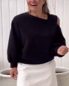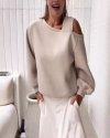 Autumn Winter Women Fashion Solid Color Shoulder Loose Long Sleeve Sweatshirt